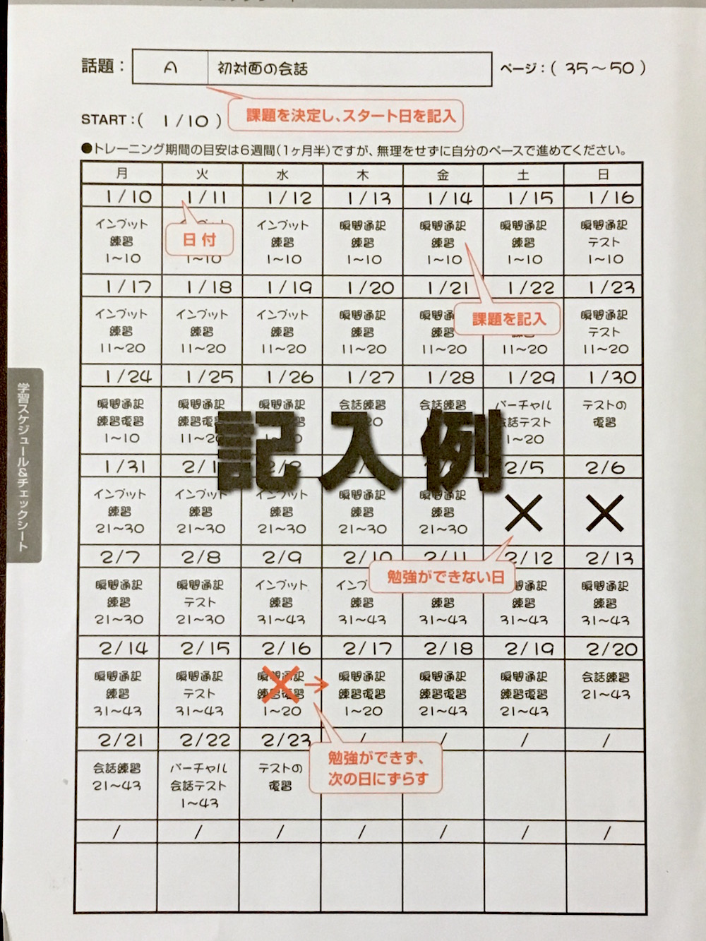 10の会話がセットになっていて、1日30分インプット練習を繰り返します。