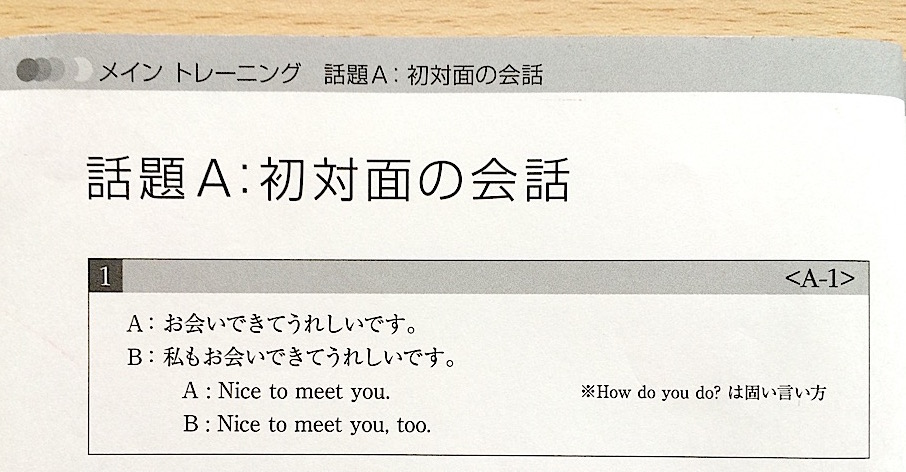 スピークナチュラルのテキストに収録されているのはじめのフレーズ